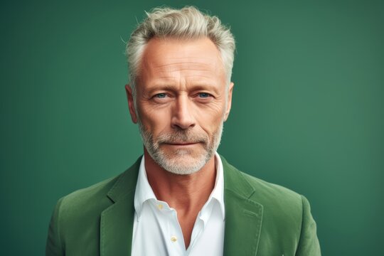 Happy young smart man posing on background