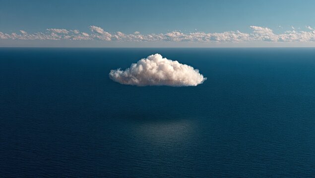 A solitary cloud floats over a vast expanse of ocean