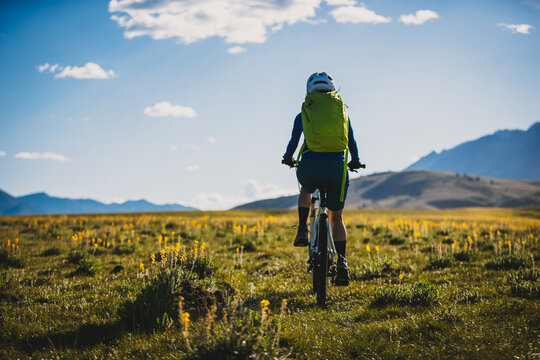 Focused cyclist rider embraces outdoor adventure on sunlit path