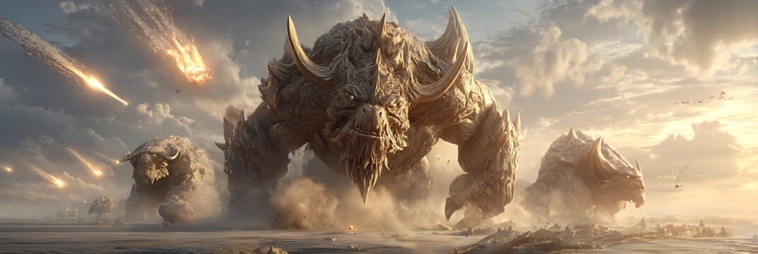 Hyperarmored war beasts charging across battlefield with fire trails and sonic booms