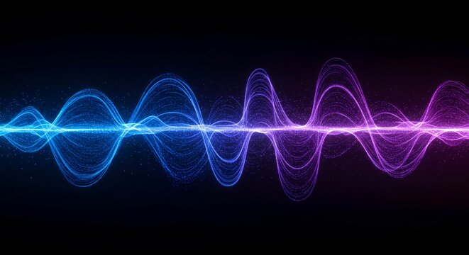 Dynamic swirling energy patterns representing data flow and sonic oscillation. Abstract visualization of amplitude and rhythm in vibrant colors ,particle ,frequency ,motion