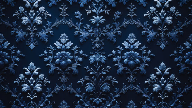Opulent damask floral wallpaper, vintage elegance, scroll, tapestry