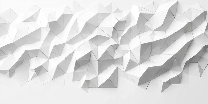 white faceted three-dimensional geometric wall with folded triangular panels, clean minimal modern texture evoking calm sophistication