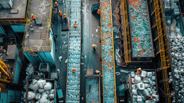 Close-up of gloved hands sorting plastic bottles on a conveyor a testament to the dedication in recycling efforts