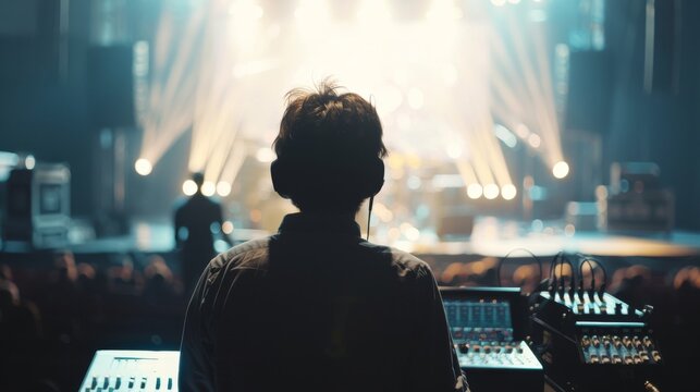 Sound technician adjusting audio mixer at live concert