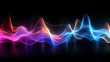 Flowing blue mesh ribbons and magenta neon waveform on black for audio tech and data visualization