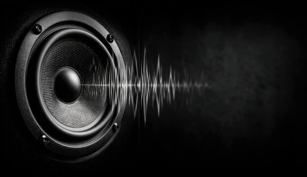 Abstract blue sound wave emanating in dynamic motion against a dark background, representing audio technology and futuristic energy