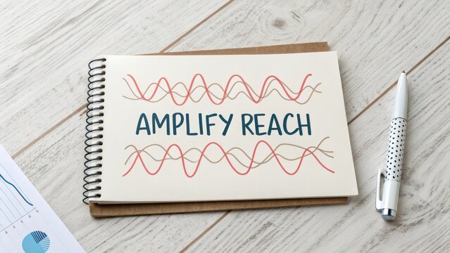 Doodle drawing card that says Amplify Reach with soundwaves
