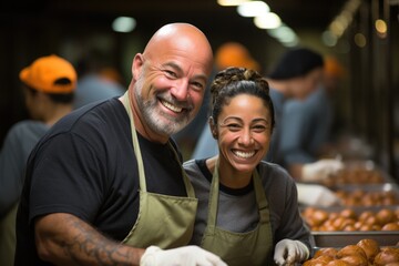 Volunteers working in a soup kitchen - stock photography