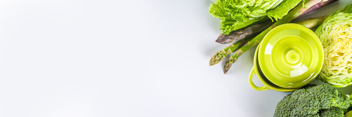 Chopped vegetables in glass bowls. Ingridients for soup on grey background. Food preparation flat lay. Homemade soup cooking concept. Image for recipe, menu and food blog.
