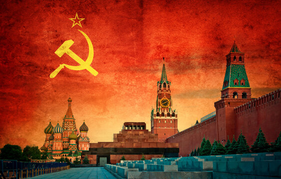 The Cold War. Flag of the Soviet Union (1922-1991). Flag of the United States (50 stars).