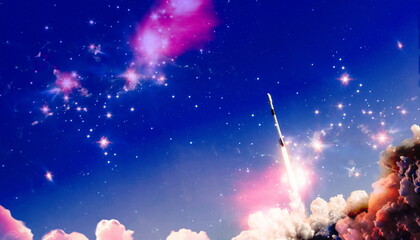 Spaceship takes off into the night sky on a mission.Elements of this image furnished by NASA