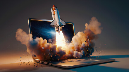 A space shuttle launches into the sky, leaving a trail of smoke behind it. The shuttle is a symbol of exploration and adventure.