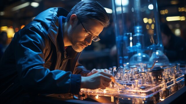 Team of scientists collaborates on advanced spacecraft design at cutting-edge laboratory