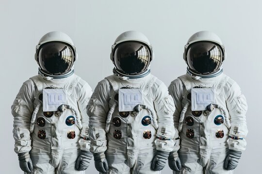 Three astronauts standing together for science and space endeavors