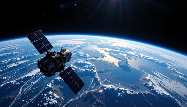 An astronaut in outer space is holding a cell phone, indicating communication or data transfer