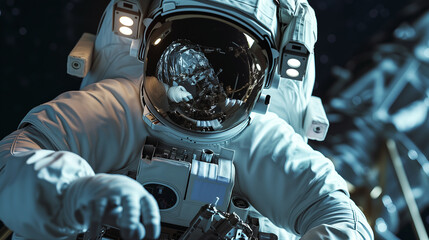 Astronaut inspecting cockpit of space shuttle endeavour during ceit