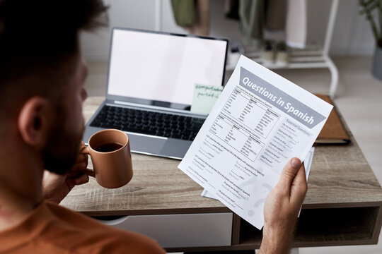 Learning foreign languages. Audio language courses. Background from countries flags and headphones on the table.