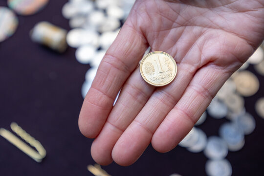 Ancient Spanish coins. Spanish money of pesetas and centimos