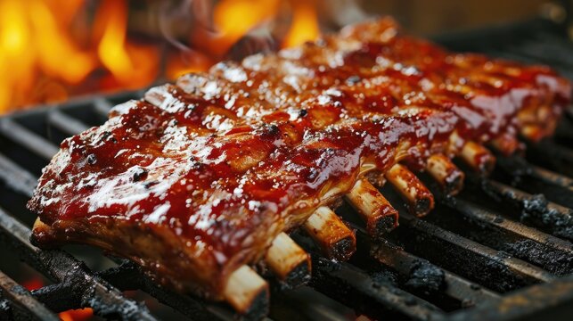 Grilled pork ribs with a spicy sauce