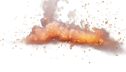 Background with fire sparks, embers and smoke. Overlay effect of burn coal, grill, hell or bonfire with flame glow, flying orange sparkles and fog on black background,