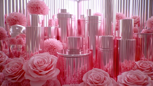 Five Graduated Conical Spools of Metallic Thread on Beige Backdrop with Silver Toned Core and Woven Textured Design