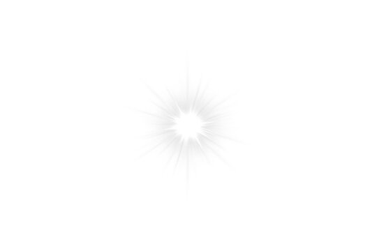 Starlight shines with white light effect. Sunburst isolated on transparent background. Abstract radiant sparkle effect of white star