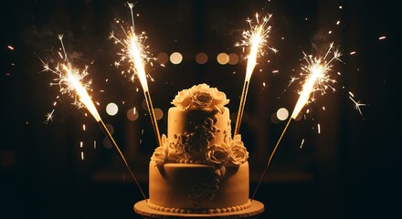 A cake with candles being blown out by a dazzling sparkler, a festive touch, Ai Generated