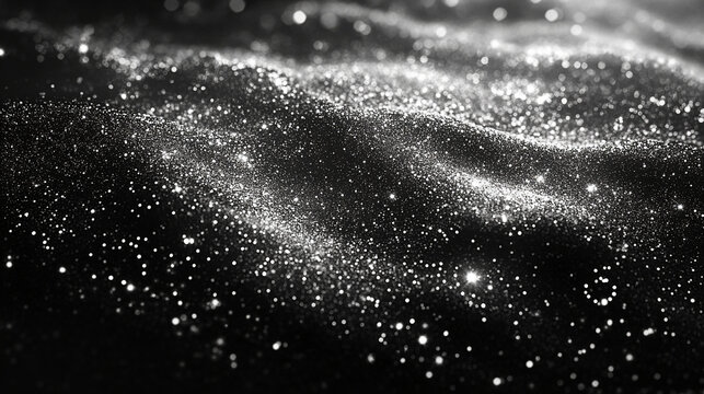 Shimmering silver sparkles create mesmerizing abstract backgroun
