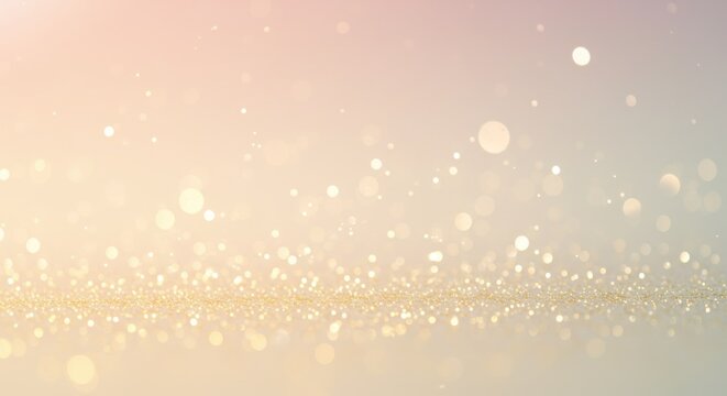 Dreamy soft pastel pink and gold background with shimmering glitter dust and sparkling bokeh lights, elegant celebration.