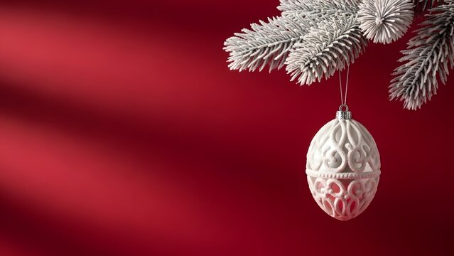 Snow globe with festive tree against a sparkling red background