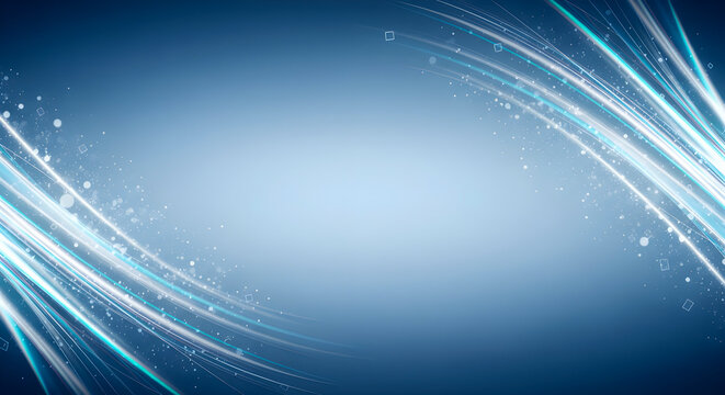 Vibrant blue background with dynamic light trails and sparkling particles