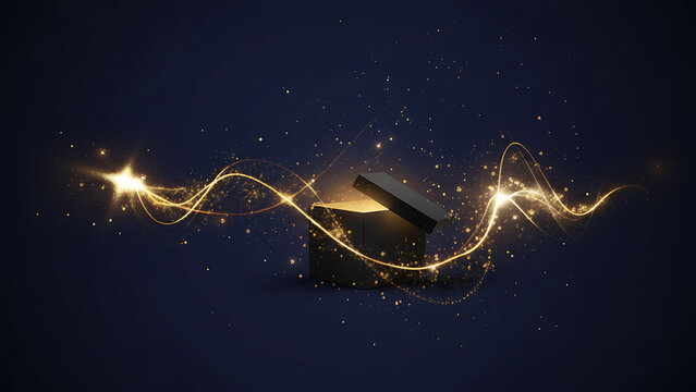 Golden spiral light trail shines with glowing particles and smooth motion curves. Abstract energy flow creates a sense of speed and elegance. Perfect for festive digital designs.