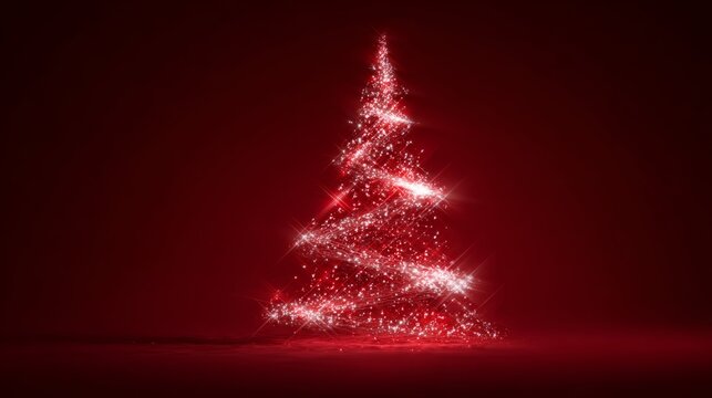 Glittering abstract Christmas tree with sparkling red lights in a dark background.
