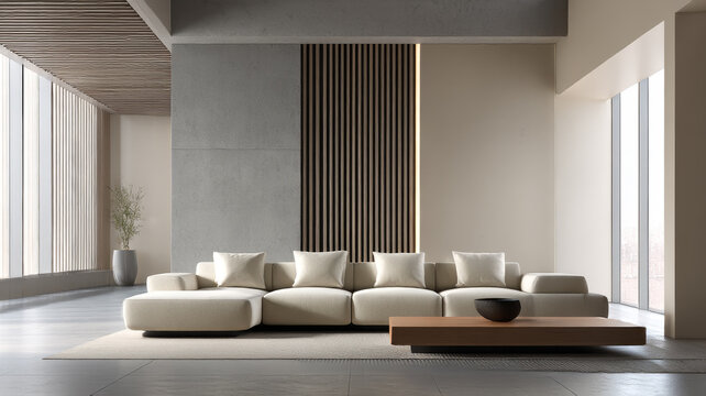 The interior is a modern spacious living room.
