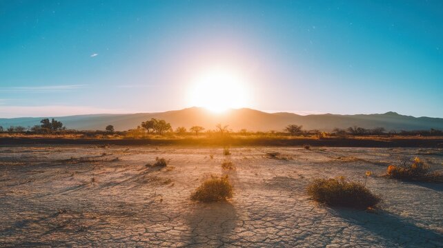 Lonely dead tree amongst desert serenity with barren, drought-affected soil