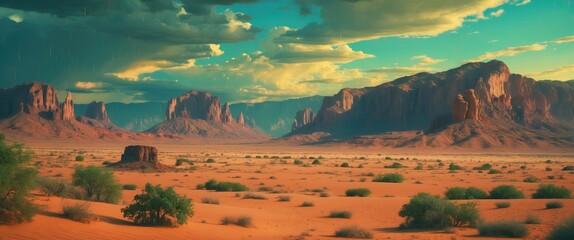 Cracked Earth Desert Landscape with Sparse Vegetation.