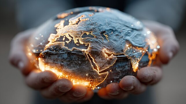 Hands holding globe network highlighting spatial analysis and GIS integration for mapping, environmental tracking, and urban development