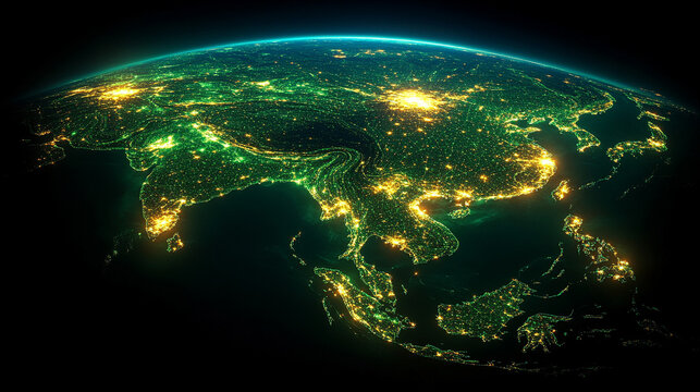 Eastern Asia symbolizes a connected technological future, illustrating networks, innovation, and the fusion of tradition and modernity in the Asian landscape