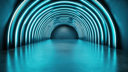 An innovative and striking image of a futuristic tunnel illuminated with neon blue lights, creating an otherworldly atmosphere that invites viewers into a unique space.