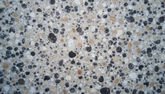 Smooth texture showing a dense aggregation of dark grey pebbles with scattered lighter colored spots