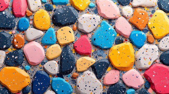 Vibrant Abstract Terrazzo Surface with Colorful Speckled Stones and Pebbles Background