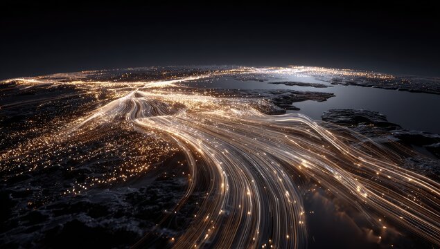 Dynamic light trails illustrating digital speed and motion
