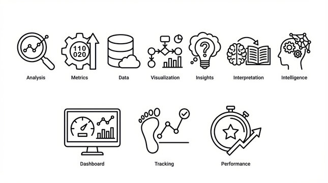Analytics behaviorcustomer icon data user concept line icon set for analysis metrics dashboard tracking performance and intelligence design Concept of user behavior tracking