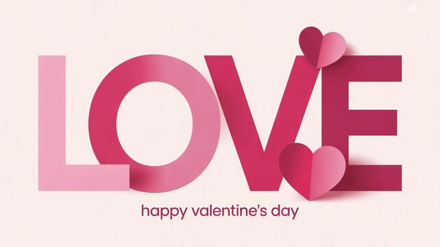 Large pink and red letters spelling out love with small hearts on a light background celebrating valentine s day