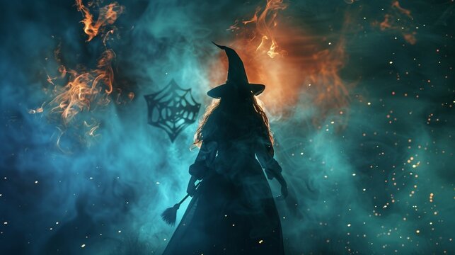 A witch, their cauldron ablaze with emerald flames, harnesses the power of nature, weaving magic into every spell.