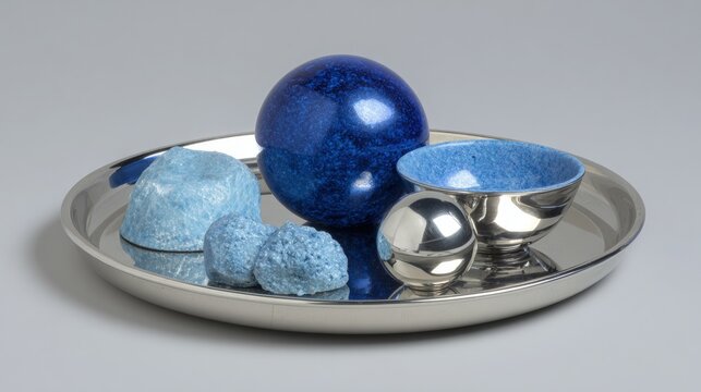 Vibrant blue roses in ornate golden bowl symbolizing mystery