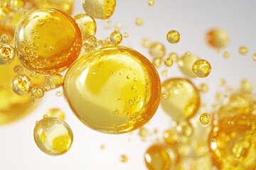 Golden and white cloud-like formations with reflective spherical elements floating against a light background