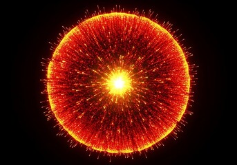 A radiant spherical burst of fiery particles with a bright central core, resembling an explosion or star formation.