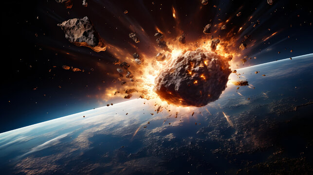 Planet Earth exploding from nuclear blast. Explosion of atomic bomb. Apocalypse, world war 3. AI Generated